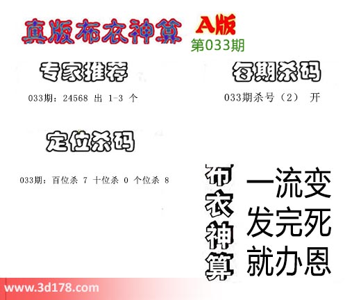 3d布衣神算第033期定位杀码: