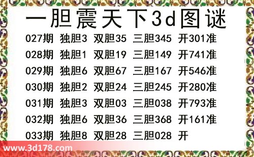 本期一胆震天下3d图谜: