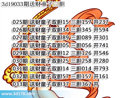 下面我们一起来回顾一下3d之家胆码图送财童子三胆近期推荐详情: