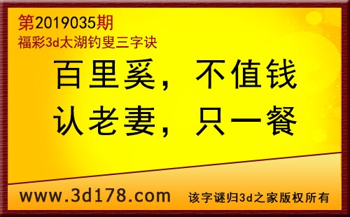 3d第19035期太湖字谜:百里奚,不值钱,认老妻,只一餐