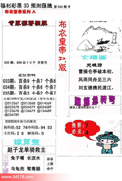 福彩3d第2019035期布衣皇帝A版布衣专家独家推荐: