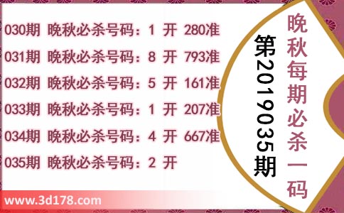 035期 晚秋必杀号码:2 开