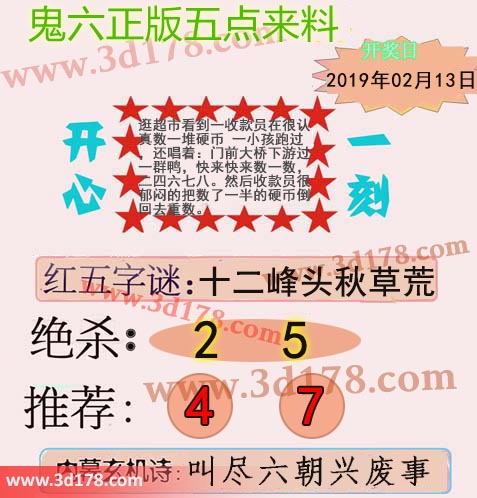 福彩3d第2019037期鬼六五点来料: