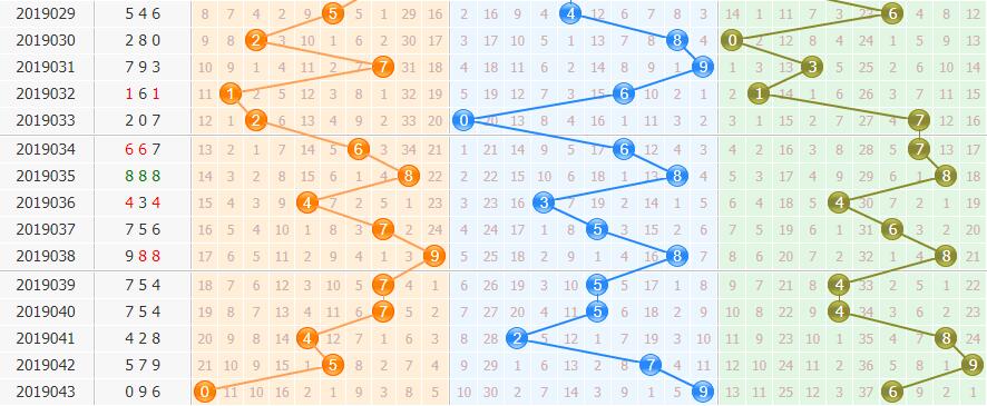 组选分析:在组选分布图上,小号0-2上期开出1枚,本期防1-2枚;中部号码3-6上期开出1枚,本期关注1-2枚;大号7-9上期开出1枚,本期关注0-1枚;结合组选复隔中分布图,上期开出组选复中中形态,本期关注复隔码最少开出1-2枚。本期出号条件:复隔码05679=1-2枚,中码12348=1-2枚。