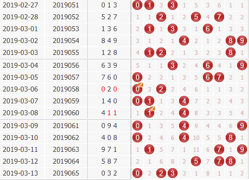 胆码分析:上期开奖号032,下期关注数字4,防数字1、9。