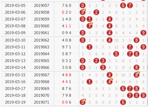 十位号码:最近五期十位以大码多开,具体是067期8、069期7、070期9,小码开出两枚,分别落于068期与071期,具体数值是4、0,接下来的072期小码仍可追捧。