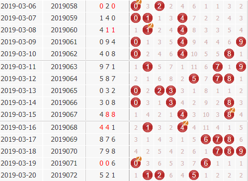 胆码分析:上期开奖号521,下期关注数字6,防数字1 0。