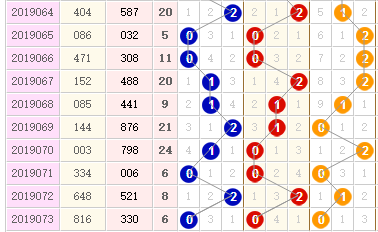 个位近10期012路分别开出3枚、3枚、4枚,0路增加,1路减少,2路减少;个位2路号码近期占优,本期个位关注号码35789;