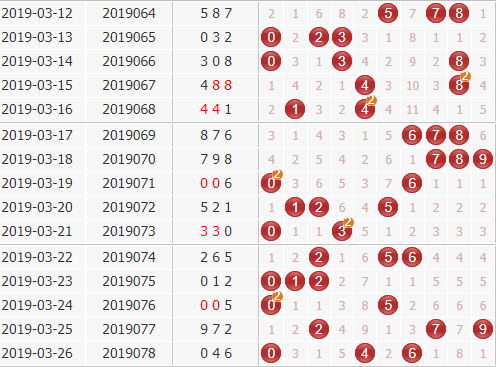 19079期胆码推荐:059 开出1-3个,金胆:5 银胆:0