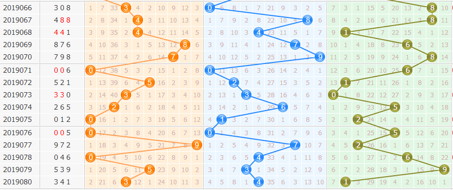 和值012路:1路和值近30期短缺,本期关注1、0路和值。