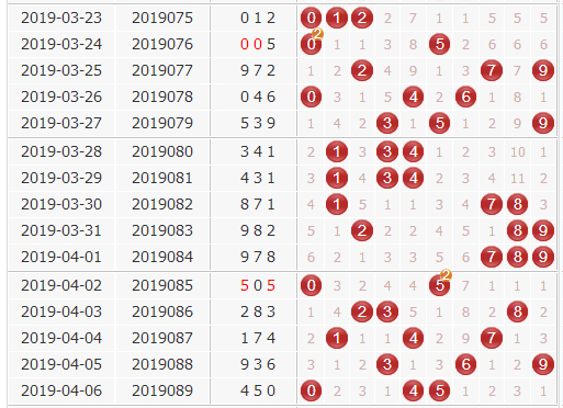 福彩3d2019089期开奖号码450,邻码开出45,和值降至9位点,跨度值为5,2019090期3d预测分析: