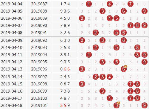 胆码分析:上期开奖号559,下期关注数字5,防数字1 8。