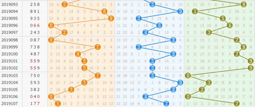 本期关注:百位(23579)十位(02356)个位(02359)