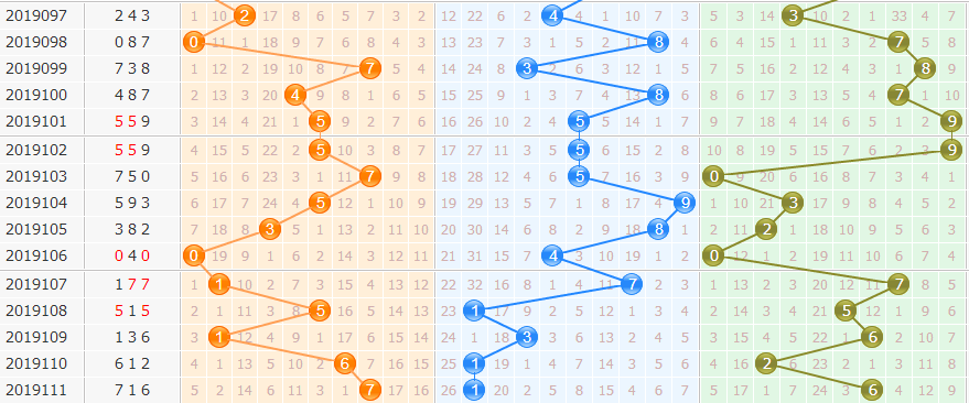 4. 和值012路:0路和值近30期占优,2路和值近期短缺,本期关注0、1路和值。