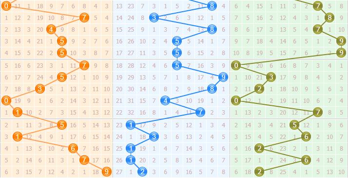 跨度分析:上期跨度7,属于大跨度开出,分析近期各区出号走势,本期跨度值看好小跨度值,重点关注3跨防7跨。