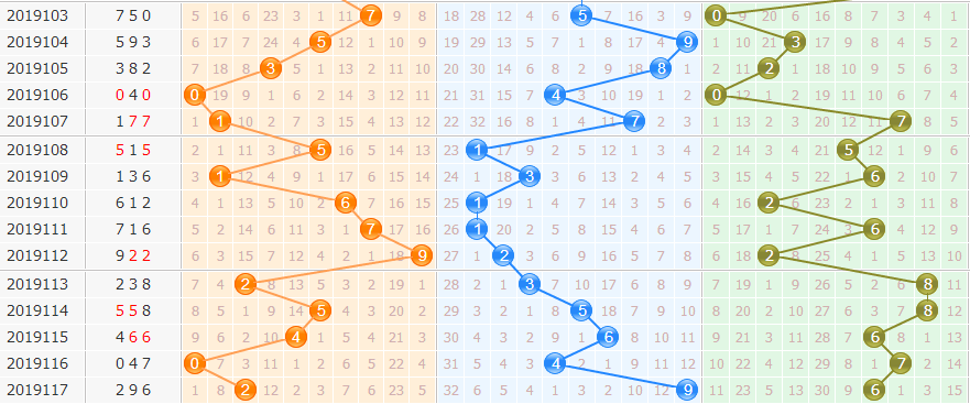 4. 和值012路:0路和值近30期占优,2路和值近期回补,本期关注0、1路和值。