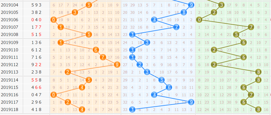 5. 和值尾走势:近10期和值尾走势0-9-4-3-3-8-6-1-7-3,小数和尾近期占优,2路和尾近30期短缺,本期关注和尾3、4、5、6、9。