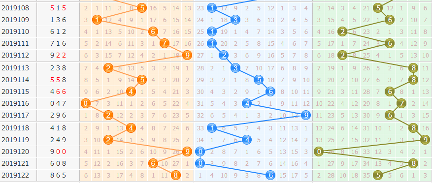 4. 和值012路:0路和值近30期占优,2路和值近期回补,本期关注1、2路和值。