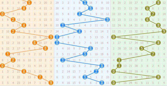 3、和值走势:近十期和值分布为15-9-14-19-13-4-9-11-20-17,一区和值开出1期,二区开出7期,三区开出2期。下期重点三区和值出号。