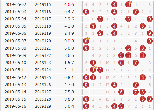 19130期胆码推荐:056 开出1-3个,金胆:0 银胆:5