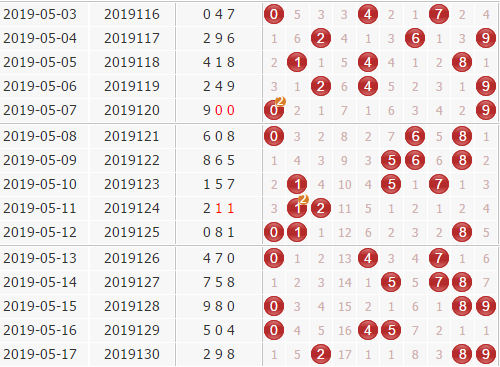 胆码分析:上期开奖号298,下期关注数字0,防数字2、6。