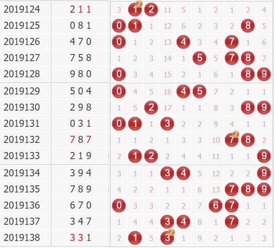 胆码分析:上期开奖号331,下期关注数字8,防数字3 7。