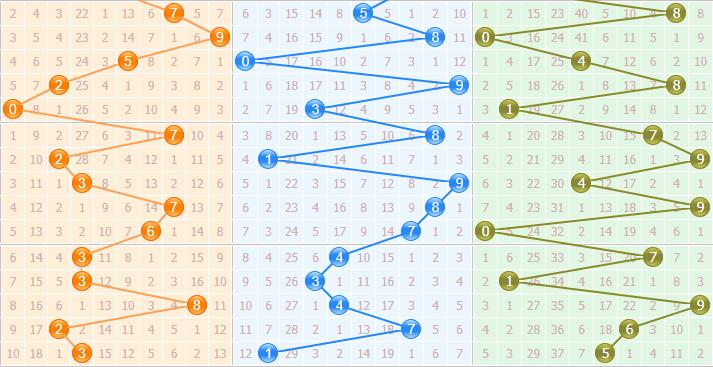 和值走向:前面3期和值全落合区,具体是139期21、140期15、141期9,呈现逐期下滑的走势,下期开奖应考虑和值折返上扬,合区和值仍可留意。