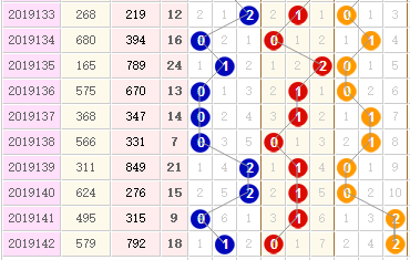 百位近10期012路分别开出5枚、2枚,3枚,0路保持,1路保持,2路保持; 百位0路号码近期占优,本期百位关注号码24578;