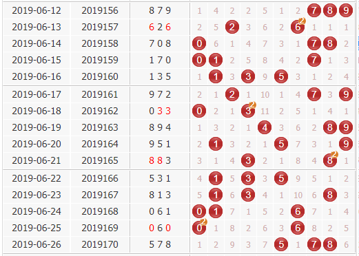 19171期胆码推荐:059 开出1-3个,金胆:5 银胆:0