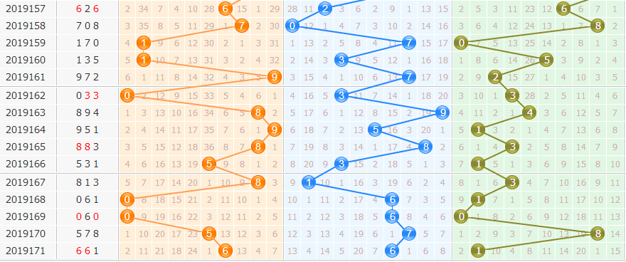 4. 和值012路:0路和值近10期占优,1路和值近30期短缺,本期关注2路和值。