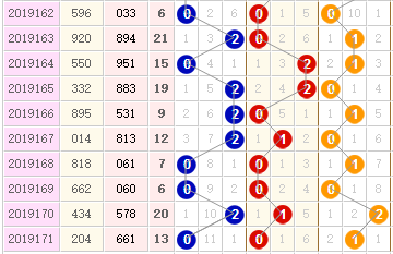 十位近10期012路分别开出6枚、2枚、2枚,0路增加,1路减少,2路保持; 十位0路号码近期占优,本期十位关注号码12458;