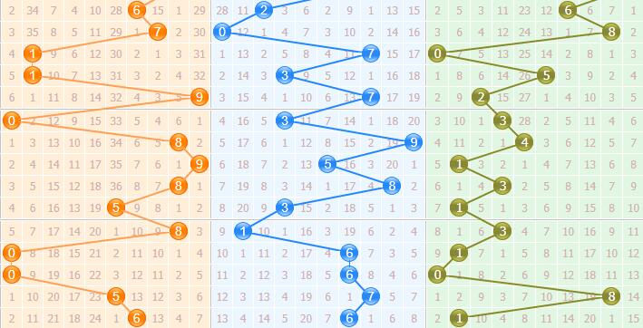 十位同上,近50期中,开出6到5有2次,到7有1次,重复1次。首先排除0路的号,再排遗漏期数多的4,几率小的7、1,本期选择2、5、8。
