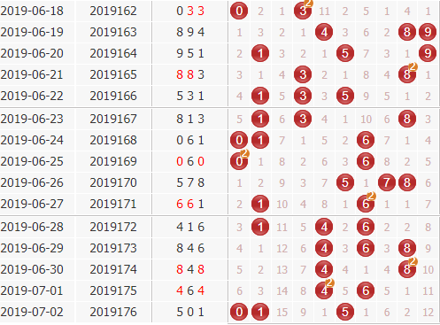 19177期胆码推荐:056 开出1-3个,金胆:5 银胆:0