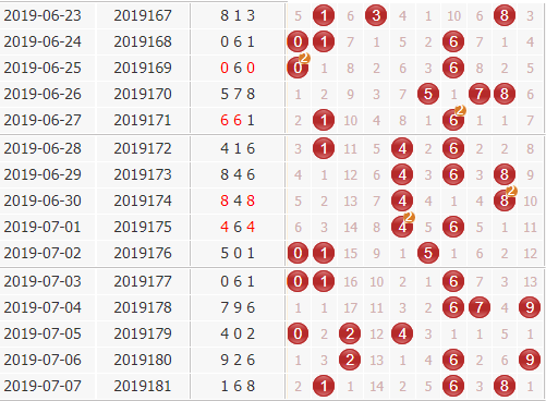 连号:179期、180期、181期连号均未开出,最近10期连号的最大连落为3期,整体活跃度不高,19182期连号回补机率不大。