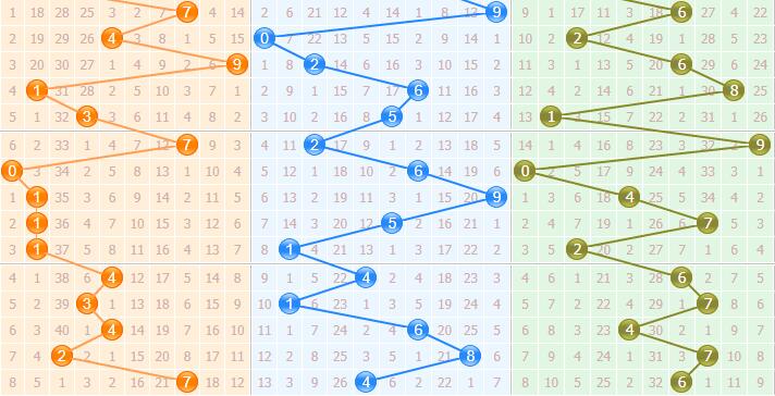个位数是最难判断的,开出6到8有3次,到2有2次,到7有1次,重复1次。首先排除0路的号,再排遗漏期数多的5,几率小的7、4,本期选择1、2、8。