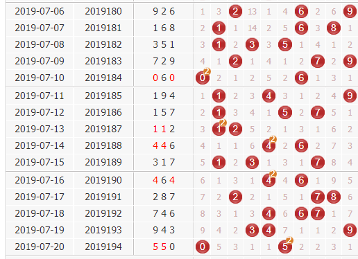 十位号码:190-194期十位开出6、8、4、4、5,最活跃的是合区数值,质码仅在最后一期补位,结合前面多期的号码轨迹分析,下期开奖合码可作为首选。