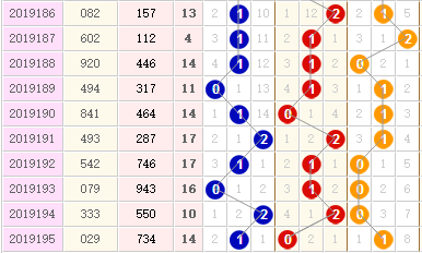 十位近10期012路分别开出2枚、5枚、3枚,0路保持,1路保持,2路保持; 十位1路号码近期占优,本期十位关注号码03578;