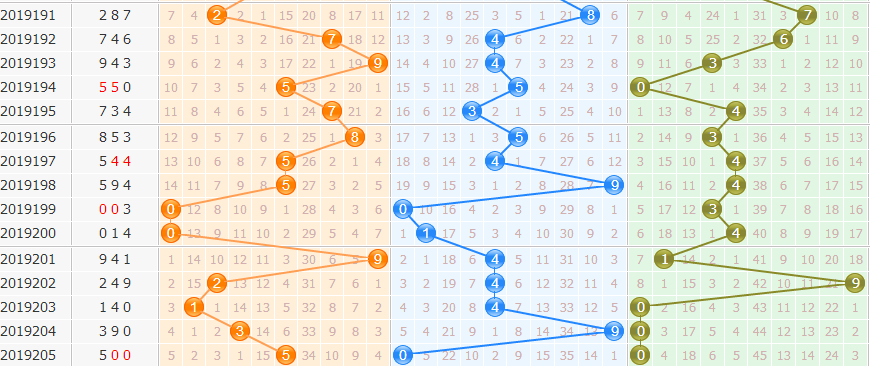 2. 和值大小:近10期和值大小比4:6,大小数和值近30期占优,本期防大数和值。