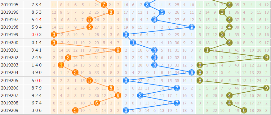 本期关注:百位(12479) 十位(02458)个位(25789)
