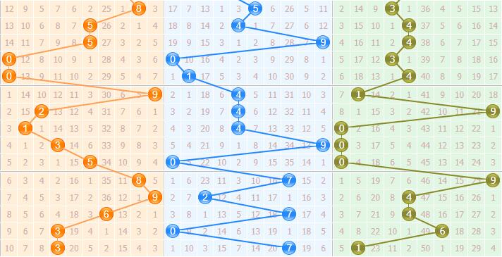 在除3余数走势中,上期开出余2路,本期依其走势推荐余0、1路;推荐:10、13、16、18。