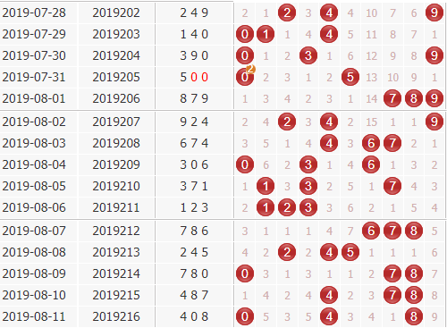 胆码分析:上期开奖号408,下期关注数字7,防数字1 2。