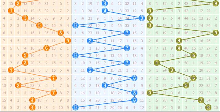 得出以上号码为:百位3、5、6,十位2、4、6,个位1、7、9,本期从整体上看,得出百位5、十位4、个位7。