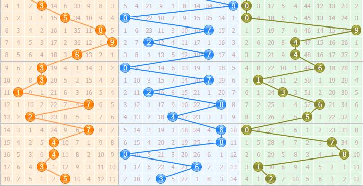 百位分析:该位最近10期开出了3个0路号码、5个1路号码、2个2路号码,1路号码热出,2路号码走冷。本期预计开出0路号码,参考号码:3、9;