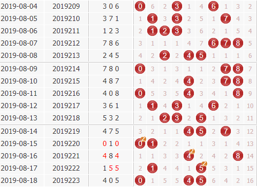 胆码分析:上期开奖号405,下期关注数字5,防数字1 8。
