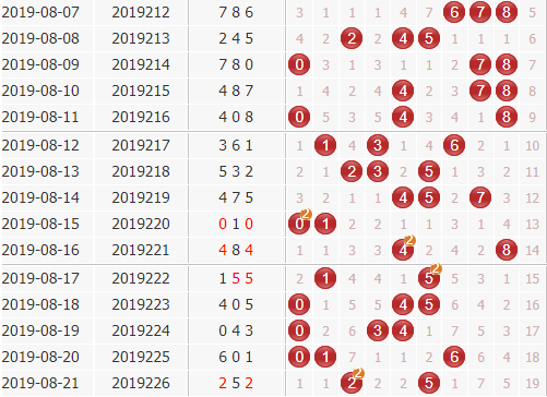 胆码分析:上期开奖号252,下期关注数字2,防数字0 5。