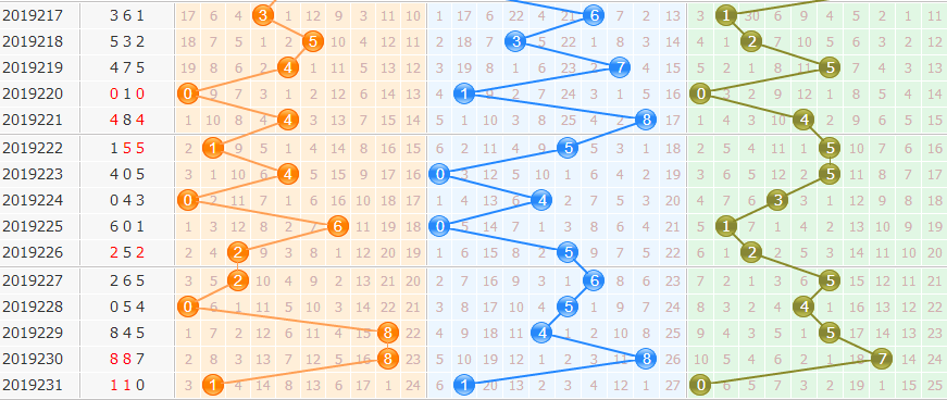 4. 和值012路:2路和值近10期短缺,2路和值近30期短缺,本期关注0、2路和值。