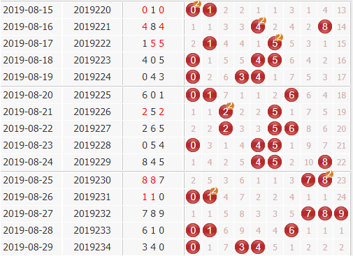 跨度分析:上期开出跨度04,下期看好跨度4 5。