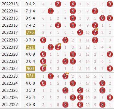 号码频次:在第328期历史同期开奖中,号码0-9出现频次分别为:号码8出现1个,号码1出现3个,号码2、6、7出现4个,号码3、5出现6个,号码9出现7个,号码4出现8个,号码0出现14个,今年同期绝杀一码1,独胆看好2。