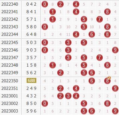 23004期胆码推荐:05开出1-2个,金胆:0银胆:5