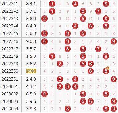福彩3D第2023004期奖号为398。奖号形态开出:小大大、质合合、奇奇偶、002路,和值20,跨度6。3d第2023005期分析如下: